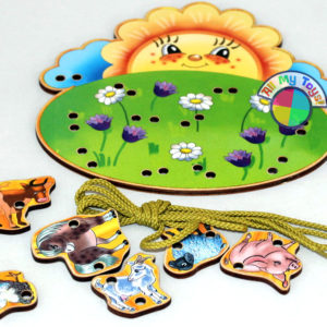 Шнуровка «На лугу» — это отличная, интересная игра, помогающая развить у детей такие полезные качества, как воображение, мелкую моторику рук, творческое и логическое мышление, а также познакомиться с названиями цветов и животных.